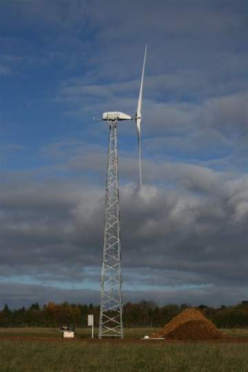 On Monday November 12th 2012 our two 11 kw Gaia wind turbine were commissioned. The turbines sit on 18m towers and have super efficient 13 m blades which allow for the production of electricity in even very light wind. They are extremely quiet, will provide us with the equivalent annual energy of operating two 4-person households and serve as a fantastic demonstration of clean, efficient and renewable sources of energy. The turbines are visible from the cafe and are positioned just off the Burford Rd. But if you are driving by- make sure not to blink or you might miss them! They are surprisingly discreet.