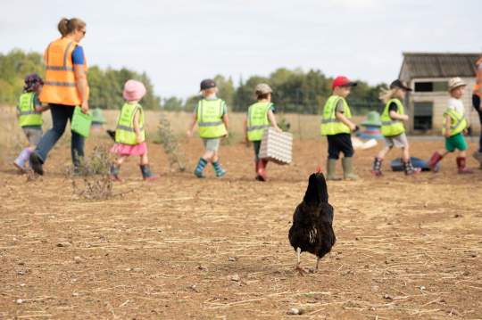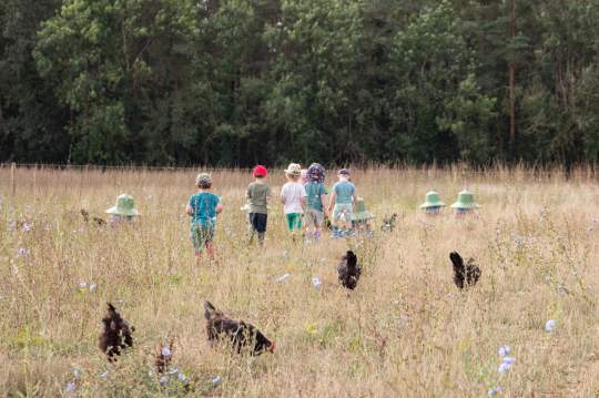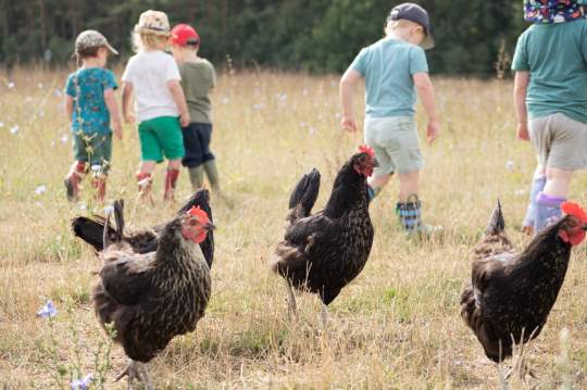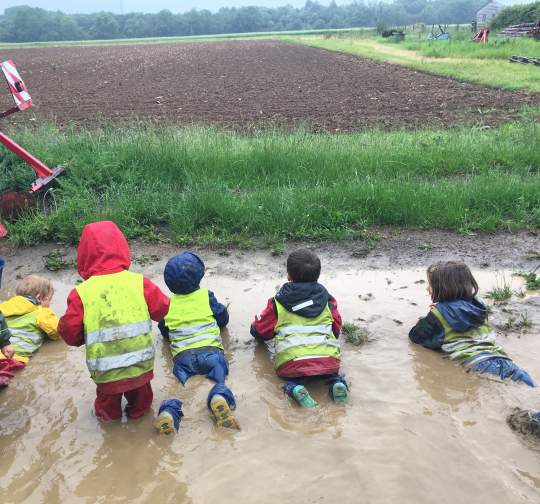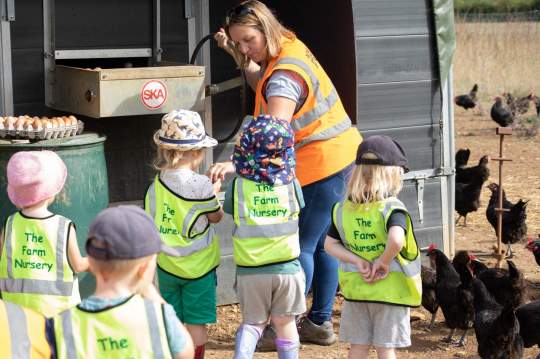 The Farm Nursery welcomes 16 children a day to the farm with a focus on outdoor child led play. They spend hours out and about on the farm ; building fires in their woodland camp, exploring the veg garden, meeting the animals and general adventuring.
