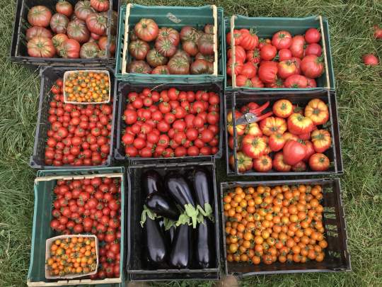 We have established our own 15 acre organic market garden which surrounds the shop and grow over 80 varieties of fruit and veg and herbs through the year.