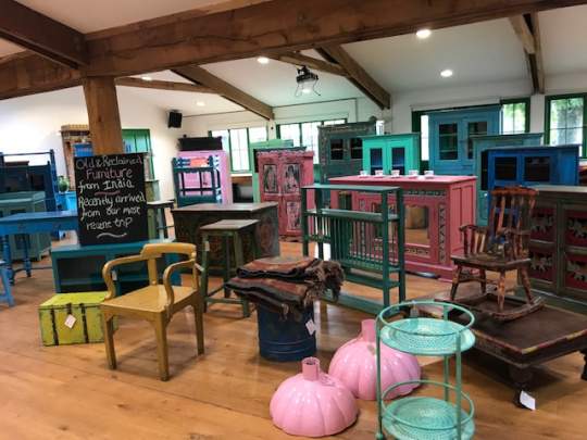Signposted from the farm shop, if you are looking for old, reclaimed or handpainted Indian furniture visit the barn (which only opens once or twice a year for a weekend.)