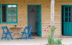 The Orchard, a residential centre built from the farms own wood, 'rustic comfort' with 9 ensuite bedrooms sleeping 16 max, a large sitting room/kitchen,underfloor heating, low energy lights and eco paint, wifi, a projector and a fabulously wide south facing verandah.