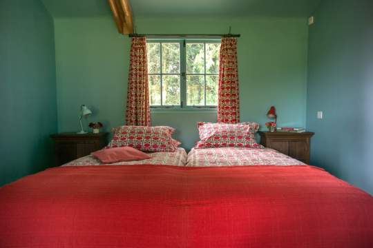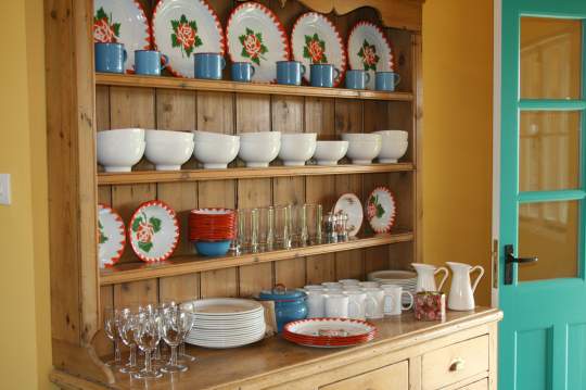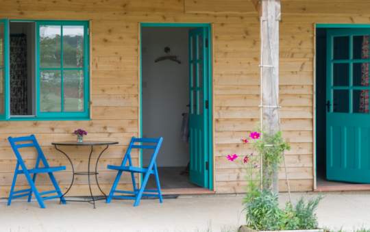 The Orchard, a residential centre built from the farms own wood, 'rustic comfort' with 9 ensuite bedrooms sleeping 16 max, a large sitting room/kitchen,underfloor heating, low energy lights and eco paint, wifi, a projector and a fabulously wide south facing verandah.