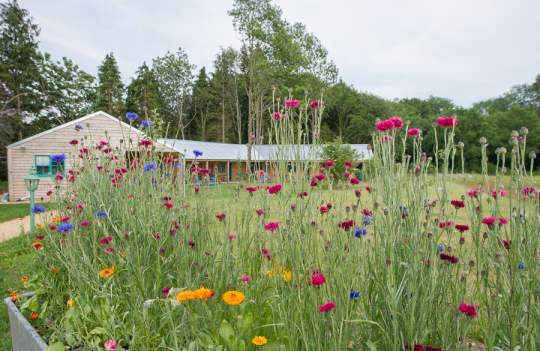 The Orchard is Abbey Home Farm's residential accomodation for educational stays, nestled into the side of a woodland strip close to the Green Room and teaching kitchen.